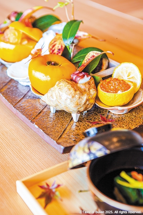 「懐石」とは 前菜からメイン料理 デザートまで順に提供されるコース料理だ。その季節ならではの食材を使い 刺身・蒸し物・焼物などさまざまな調理法で仕上げられる。料理はまるで芸術作品のように美しく盛り付けられ目で楽しめるのも特徴だ 釜山で懐石料理の名店として知られているのが「森」だ 日本で料理を学んだ韓国人の料理長が日本人の妻とともに営む店で、釜山の新鮮な海産物や旬の野菜を使った繊細な料理を提供している 料理長は食材の調和はもちろん コース全体の心地よい流れを生み出す独自のセンスを持つ 住所:海雲台(ヘウンデ区해운대구)