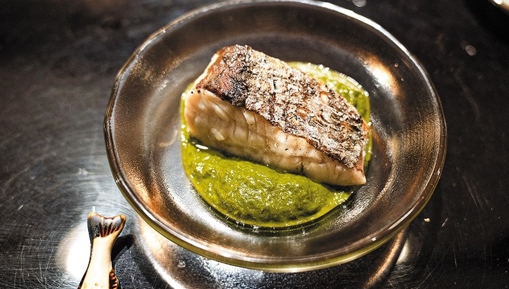 「ウットゥム囲炉裏端」のサワラのペストソース添え